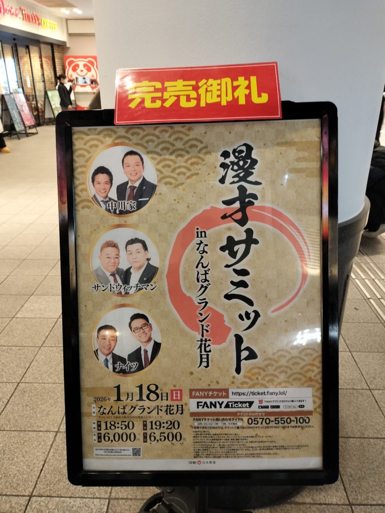夜は漫才サミットを観にNGKに行きました。中川家ラジオショーを愛聴しているおっさんとしては長らく一度は行ってみたい全国での即完イベントでした。今年はNGKという事で抽選申込に申しこんで当たりました。当日は立見席も販売されていて超満員でした。実力派のベテラン3組に当日サプライズゲストで、「やすとも」が漫才をしてくれました。ネタ時間20分の超実力派4組の漫才は会場爆笑の連続でした。十分満足してリフレッシュしました。楽しかった~。